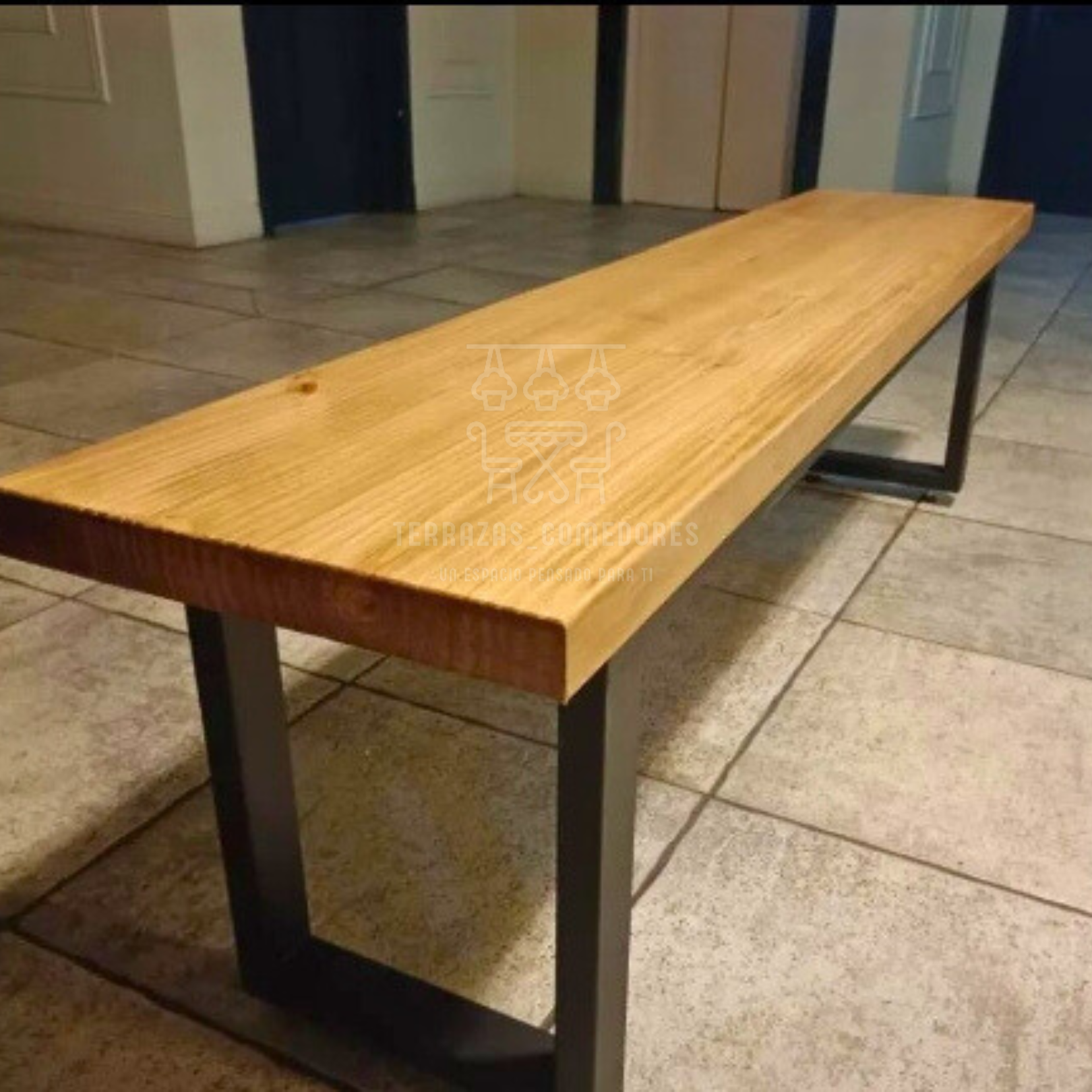 Cada viga de la banca industrial ha sido meticulosamente cepillada y tratada con protector de maderas Cerestain, lo que garantiza no solo una durabilidad excepcional, sino también un acabado pulido y vitrificado que realza cualquier espacio. La base de la banca industrial, fabricada en fierro 50/30 de 1.5 mm, ofrece una estructura firme que complementa a la perfección el estilo industrial moderno, integrándose sin esfuerzo en cualquier decoración.