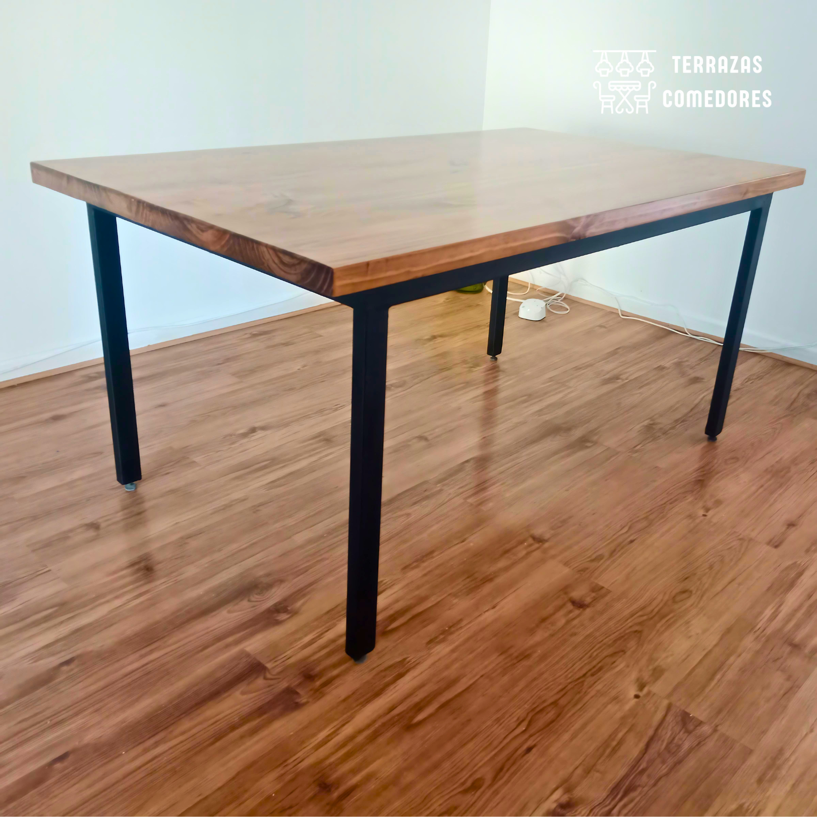 La base, hecha de fierro 50/30 en 1.5 mm, no solo aporta una estructura sólida, sino que también añade un toque industrial moderno que se integra perfectamente en cualquier decoración. Además, la mesa incluye patines anti rayones, protegiendo tus pisos y manteniendo la mesa en su lugar.