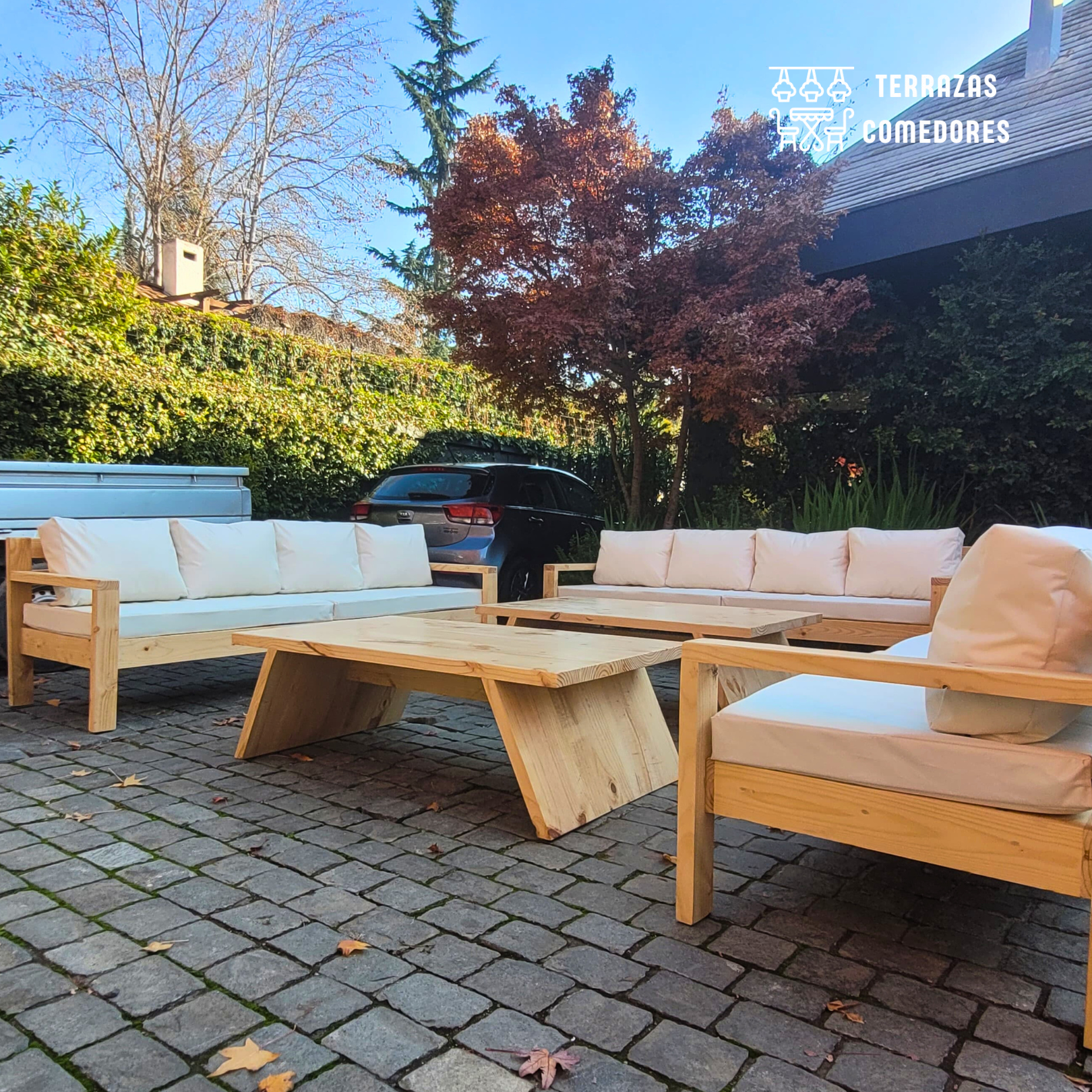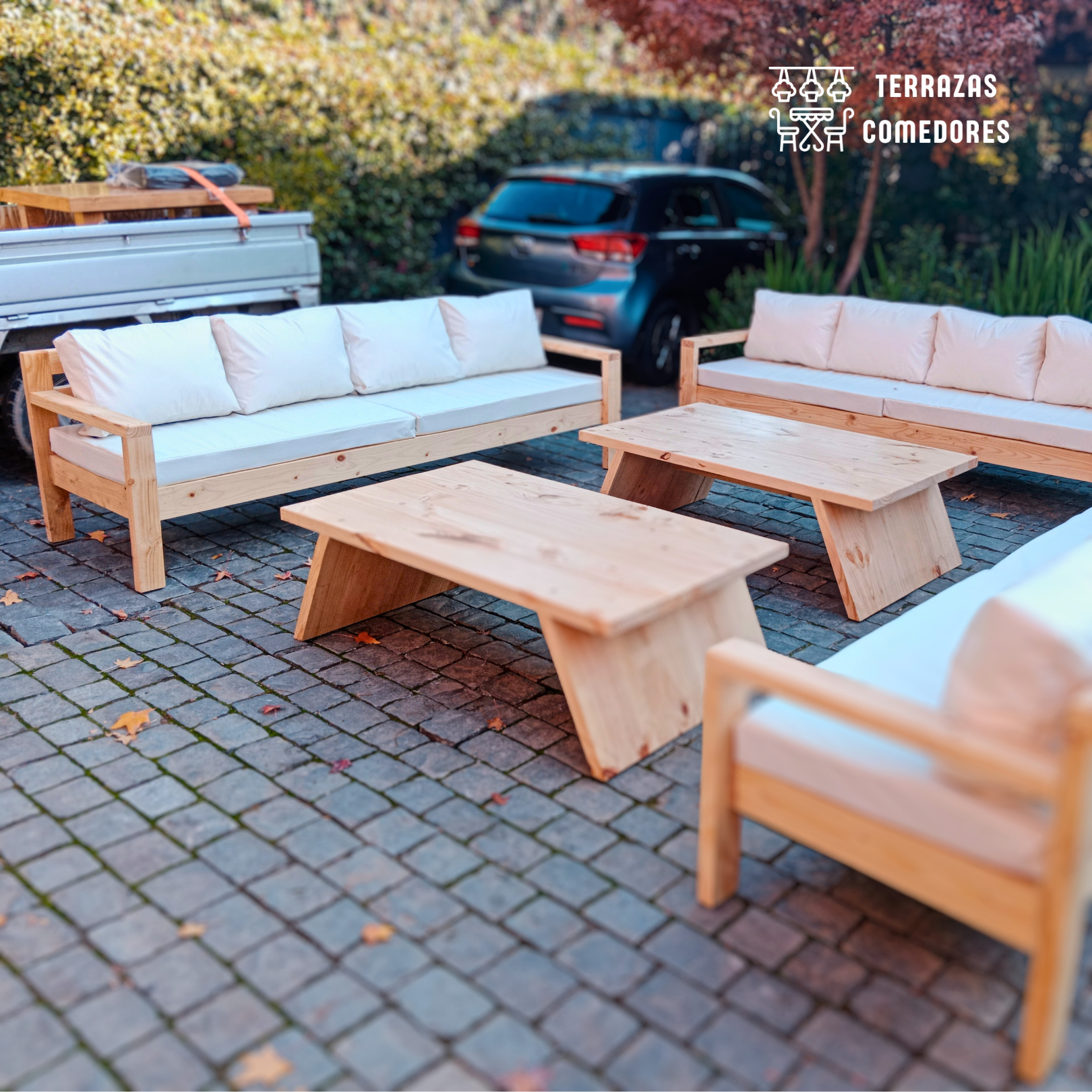Dimensiones: Puedes elegir entre 6, 9, y hasta 12 cuerpos repartidos en 3 sofás. Cada cuerpo es considerado entre los 60 a 65 cms de ancho. Las mesas tienen una dimensión de 120 cms de largo por 60 cms de ancho.
