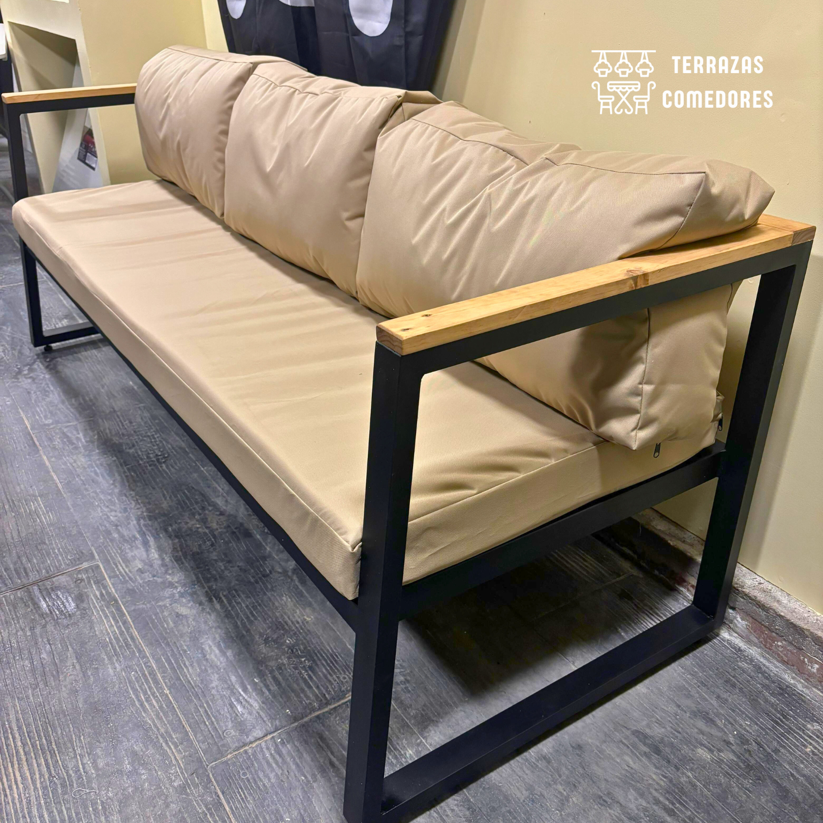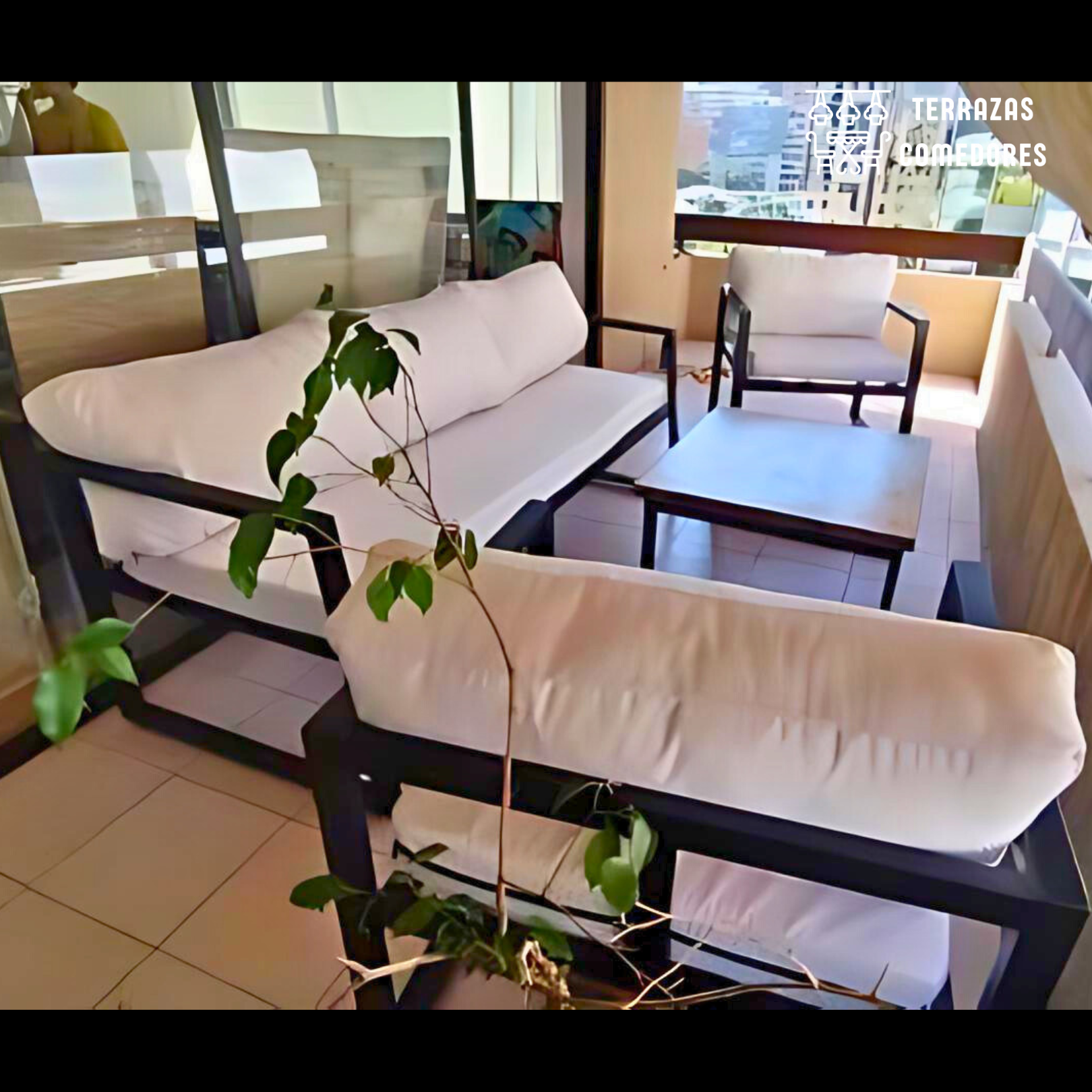 - Cojinería Impermeable: La terraza industrial Incluye cojines de base hechos con espuma D21 de 10 Cms de espesor. Los cojines del respaldo están rellenos con algodón Hipoalergénico, cubiertos en una doble capa que los protege de la humedad. Las fundas son impermeables, y cuentan con cierre, ideal para mantenciones simples.