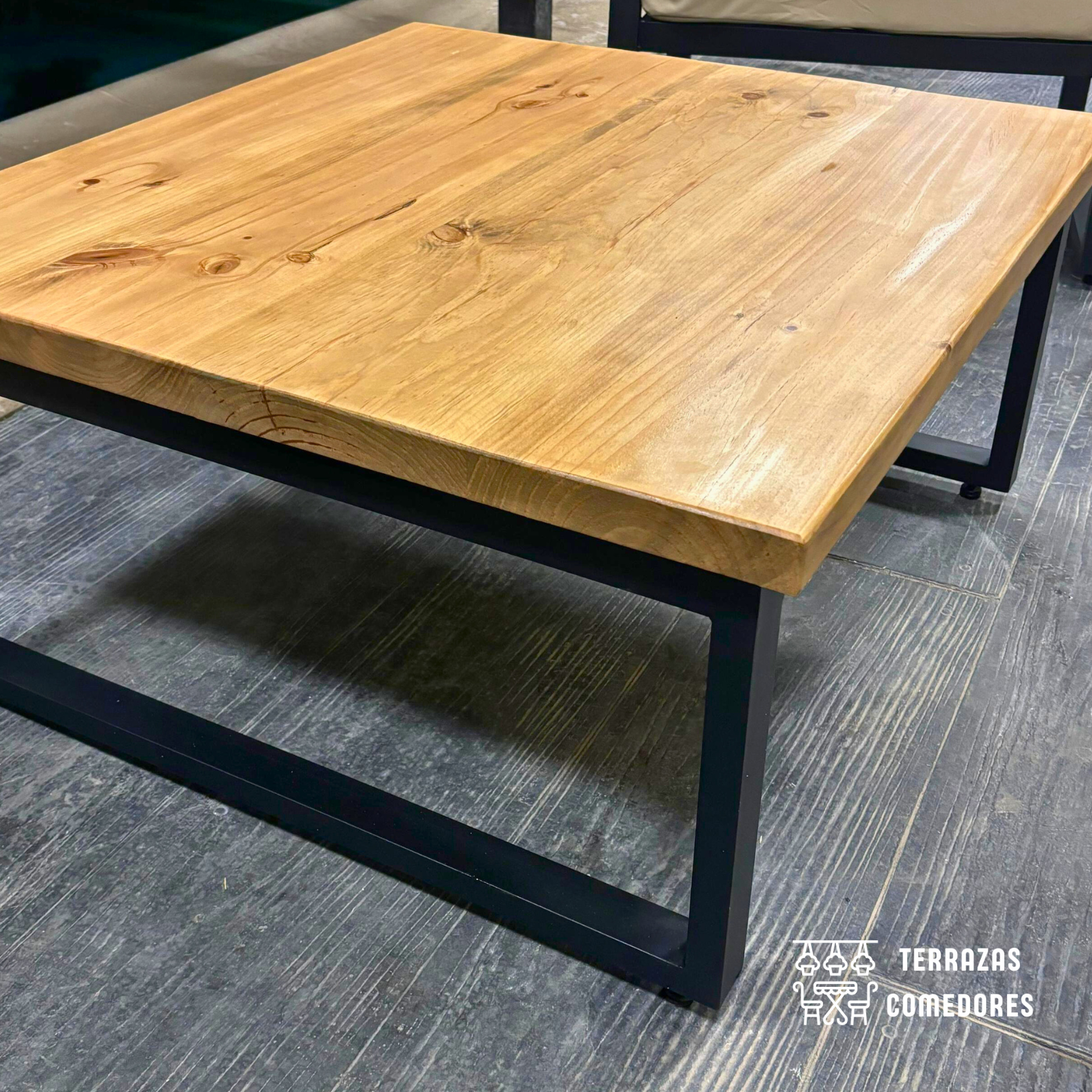 - Construcción Superior: Nuestra terraza industrial está fabricada con perfil de acero 50/30 de 1.5 mm, este juego promete durabilidad y estabilidad, acabado en un sofisticado color Negro Mate, y un acabado de madera en los bordes superiores, que no solo resiste el paso del tiempo, sino que también añade un toque de elegancia contemporánea a cualquier espacio.