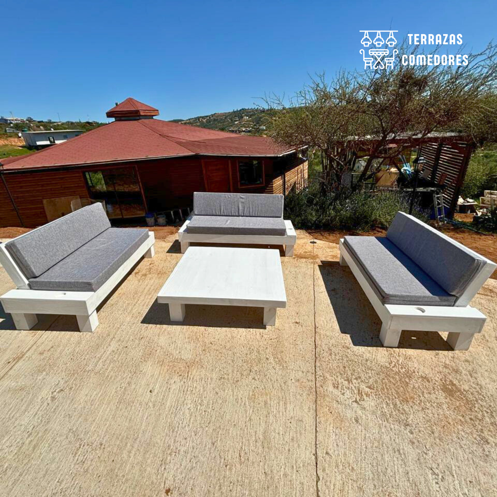 Nuestro juego de terraza posavasos, hecho de Pino Radiata pulido y tratados con Cerestain del color que elijas, lo que ayuda a proteger de la humedad ambiente y de los rayos UV. Los cojines de la terraza posavasos son de espuma D21, garantizan una comodidad y durabilidad inigualables, y sus fundas lavables con cierre facilitan su mantenimiento.